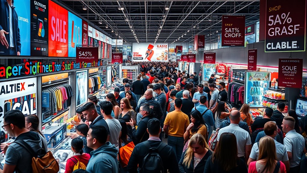 You’ll notice that shopping habits vary across regions due to regional preferences and cultural influences. In some areas, you might shop early for holiday deals, while others wait for specific sales days like Black Friday or local festivals. These differences shape your shopping behaviors, making you more likely to seek out sales aligned with regional traditions. Cultural influences also impact what products you prioritize, affecting your overall shopping experience.