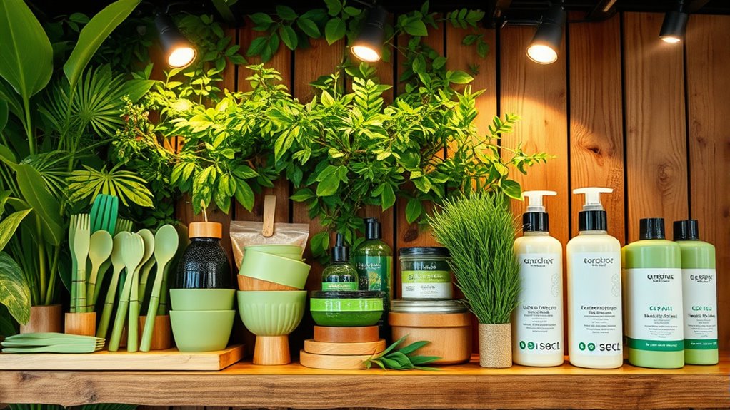 During Amazon’s 2025 Green Friday deals, eco-friendly products with biodegradable packaging are trending. You’ll find options across categories like skincare, household, and personal care, all designed to reduce plastic waste and support sustainability. Brands are investing more in materials that break down naturally within months, helping you shop responsibly without sacrificing quality. If you keep going, you’ll discover even more about how these choices can benefit both your lifestyle and the planet.