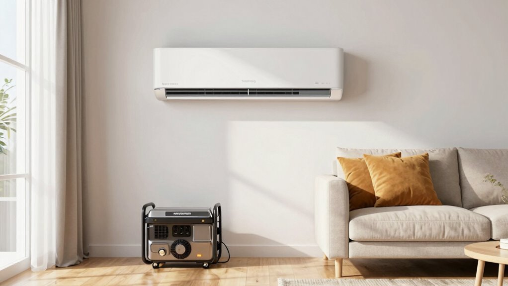 When it comes to staying comfortable during power outages or hot summer days, Amazon shoppers are increasingly turning to mini splits and portable generators. This shift highlights a growing awareness of energy efficiency and a desire for solutions that don’t compromise comfort for cost or noise. Mini splits, known for their energy-efficient operation, allow you to cool or heat specific rooms without wasting power on unoccupied spaces. Their ability to deliver targeted climate control makes them a smart choice, especially when energy savings are a priority. You’ll notice that many models feature inverter technology, which adjusts compressor speed to match cooling or heating needs, ultimately reducing energy consumption. This focus on efficiency not only lowers your utility bills but also aligns with environmentally conscious choices, which many shoppers value highly. Additionally, the importance of battery capacity in generator selection is increasingly recognized, as it directly impacts how long your system can operate during an outage. As consumers become more aware of energy-efficient technology, they are more inclined to choose products that save power while maintaining performance. Moreover, understanding the noise levels of generators is essential, as quieter models are more desirable for residential use.