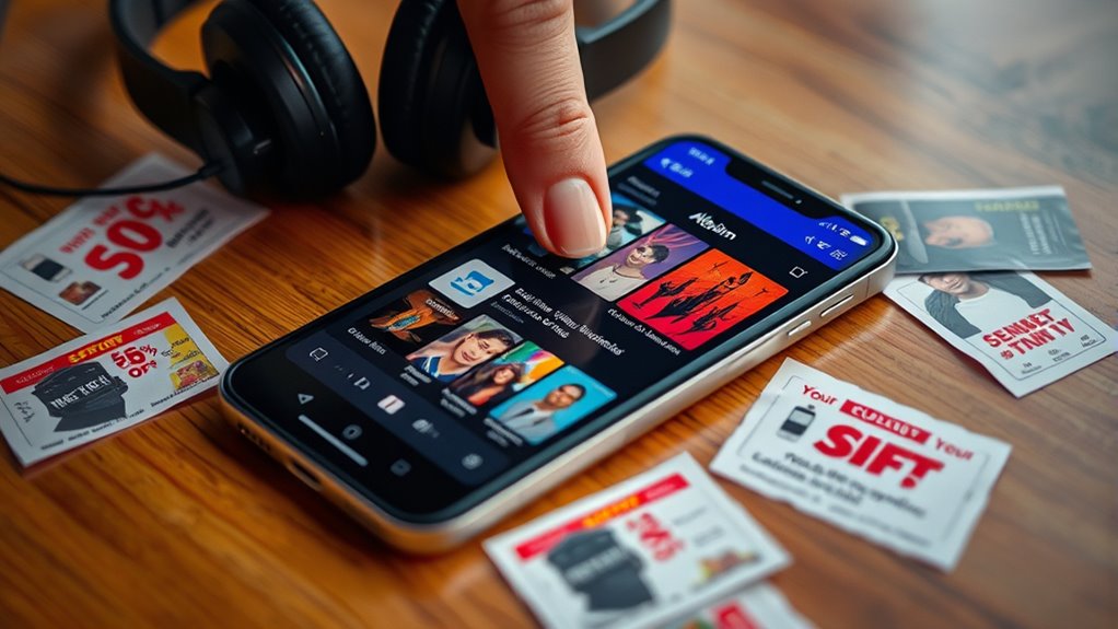 With Prime Music’s hypothetical Stream & Save feature, you can access coupons and discounts just by hitting play on your favorite songs. This creates a fun way to turn your listening habits into rewards, encouraging more engagement with your Prime Music experience. As you stream regularly, you may earn savings and bonuses that add value to your membership. Keep exploring, and you’ll discover how this innovative feature can make your music sessions even more rewarding.