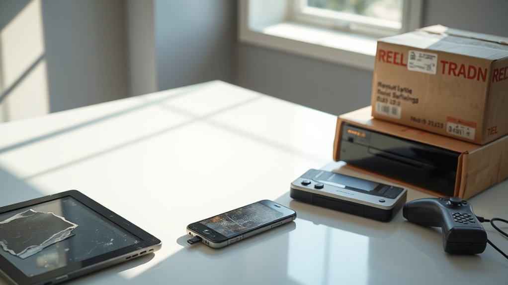 You can turn your old tech into cash by using Amazon’s trade-in and recycling programs. Simply answer a few questions about your device’s condition to get an instant valuation, then ship it using a prepaid label if you accept the offer. Amazon inspects your item and credits your account or gift card. This process is eco-friendly and helps you save money while decluttering—continue on to discover how to maximize your trade-in benefits.