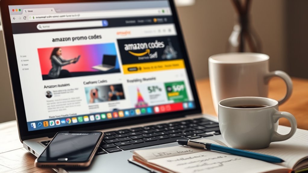 To find legit Amazon promo codes, start by visiting trusted coupon websites like RetailMeNot, Honey, or Coupons.com, which regularly update valid discounts. Follow Amazon’s official social media accounts for exclusive deal alerts, and subscribe to deal newsletters for early access and special codes. Always verify promo code validity before use, and act quickly on time-sensitive offers. For more tips on maximizing your savings, keep exploring trusted sources and stay alert to new deals.