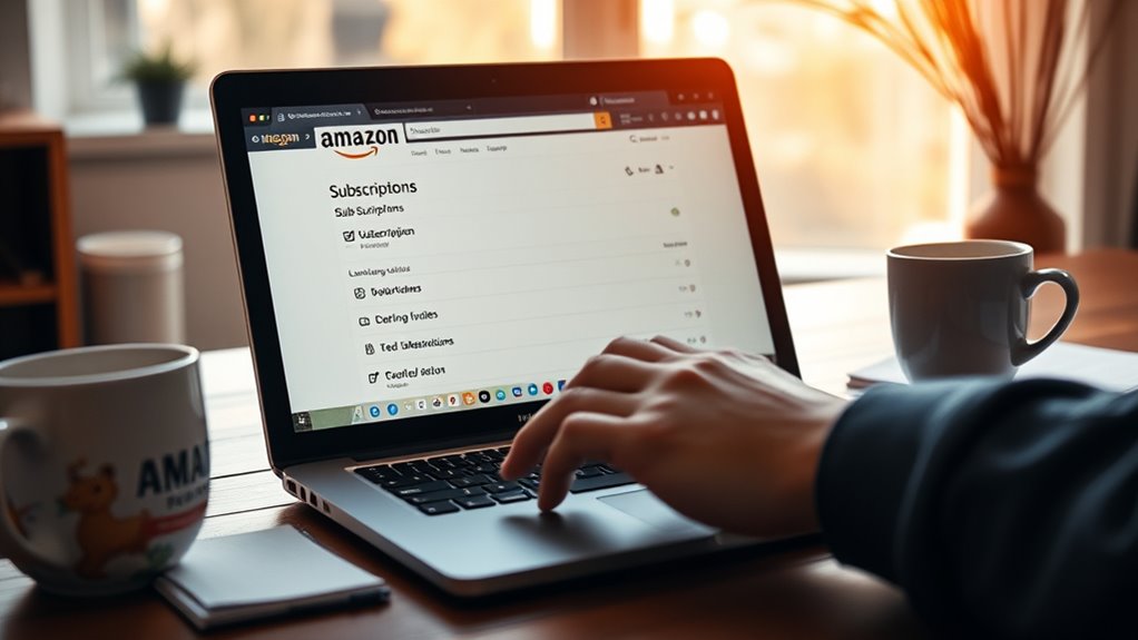 Managing your Amazon subscriptions is simple. You can skip upcoming deliveries, postpone shipments to a later date, or cancel subscriptions entirely through your account’s subscription management page. Just select the items you want to adjust, follow the prompts, and you’re set. Doing so helps you control your orders and avoid unnecessary charges. Keep going to discover detailed steps that can help you stay on top of your subscriptions effortlessly.
