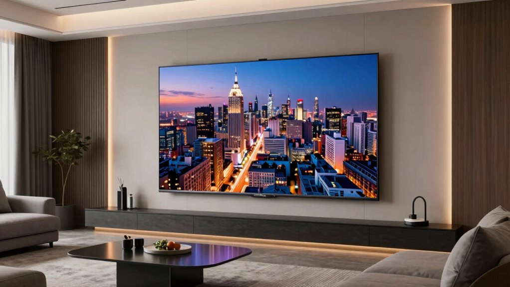 Remember, sometimes less is more. The 75-inch TV rule reminds you to choose a screen size that complements your space without overwhelming it. Before you splurge on that giant display, consider your room’s dimensions and viewing distance. After all, size isn’t everything—it’s about creating a cozy, immersive experience. As the saying goes, “Good things come in small packages,” so pick a size that fits your home perfectly and enjoy your viewing moments comfortably.