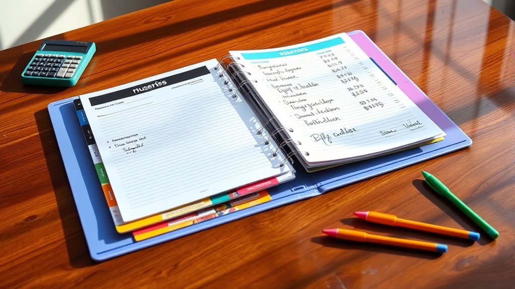 Finally, make your binder visually appealing and organized by clearly labeling sections and using printable templates for consistency. Including pockets or envelopes for receipts and coupons keeps everything accessible. Regular updates and reviews help you stay engaged and improve your budgeting skills over time. By creating a well-organized Amazon household budget binder with dedicated coupon sections, you’ll gain control over your finances and enhance your ability to save effectively.